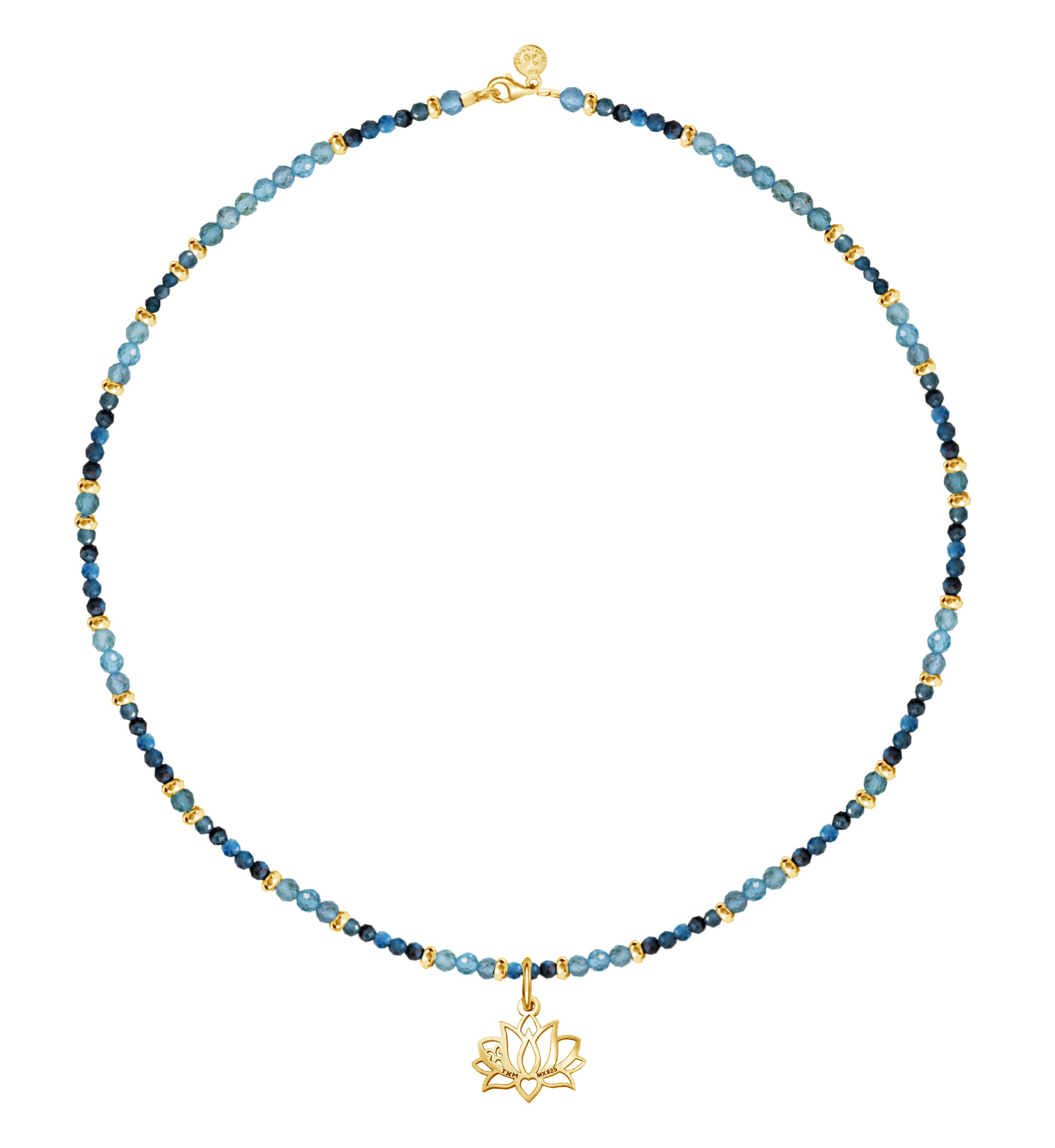 Collar Mujer Plata 925 Zen Charms Luna Elefante Astros Apatita Dorado